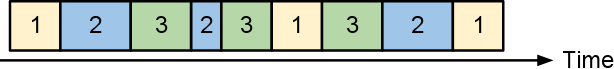 In the figure below, the operating system rapidly switches between three threads. As such, it appears as if all three threads are running in parallel. Notice that the amount of time each thread runs is not constant, and threads do not always run in the same order. The operating system decides when and how to switch between threads.