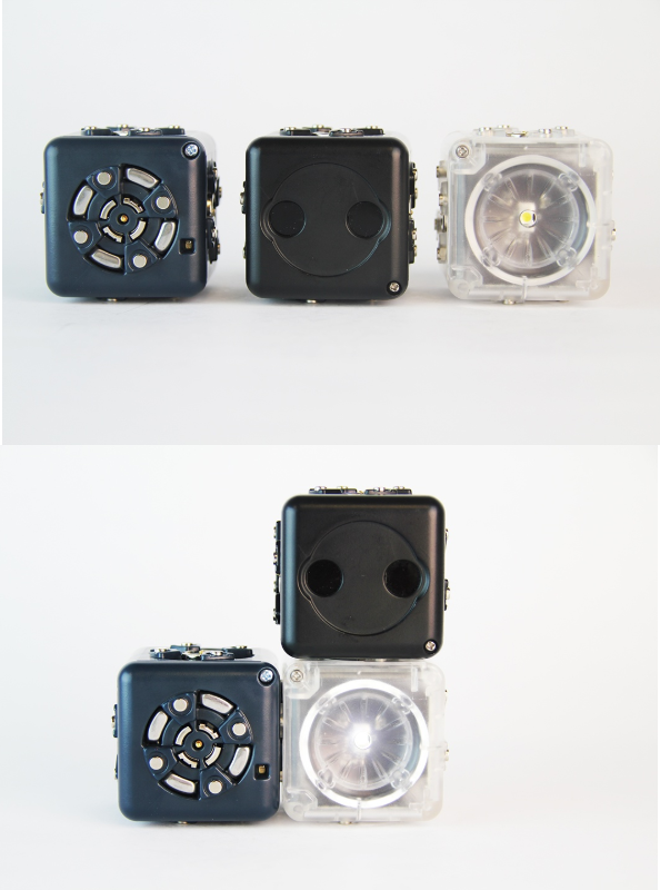 These activities have no suggested age levels because different challenges may appeal to different groups depending on the objectives of your class, camp, or club. Most students who are new to building with Cubelets will have more initial success and gain more understanding by starting with a single sense (black Cubelet) single Action (clear Cubelet) robots. This can be done separately or can use the exercises presented in Cubelets challenges, Part 1 (this activity).