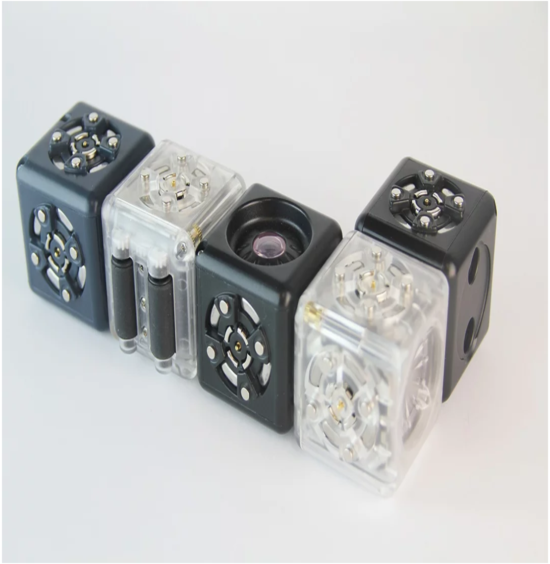 Our robot action parts are in these clear cubes.